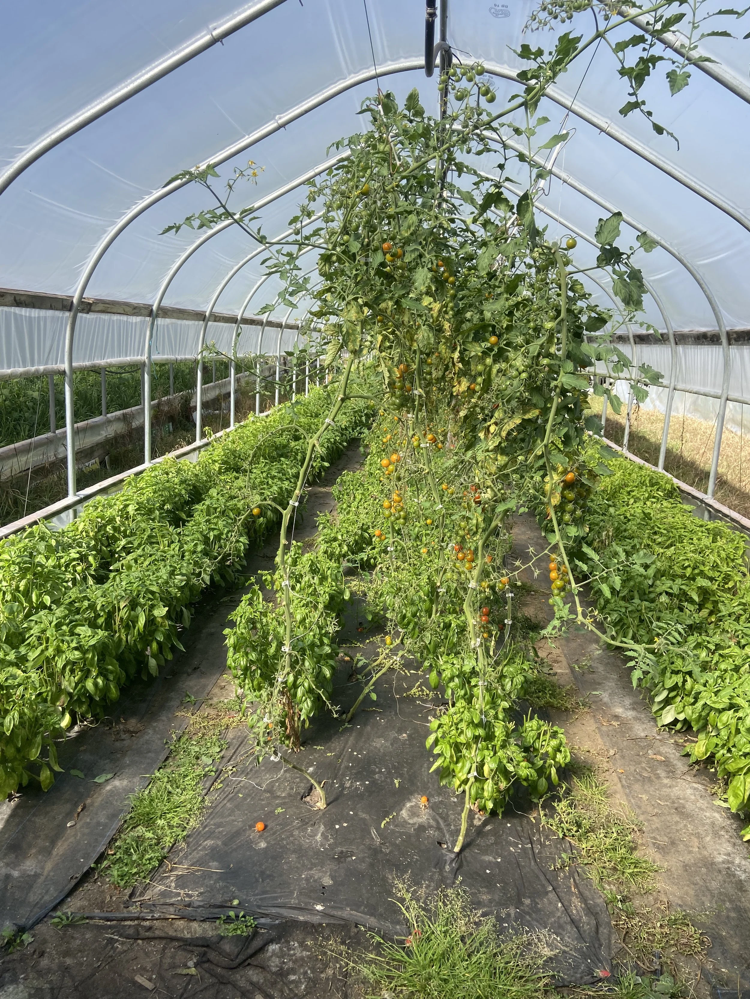 Cherry tomatoes and basil have made it through the recent cold weather. We are excited to have cherry tomatoes again for you this week.