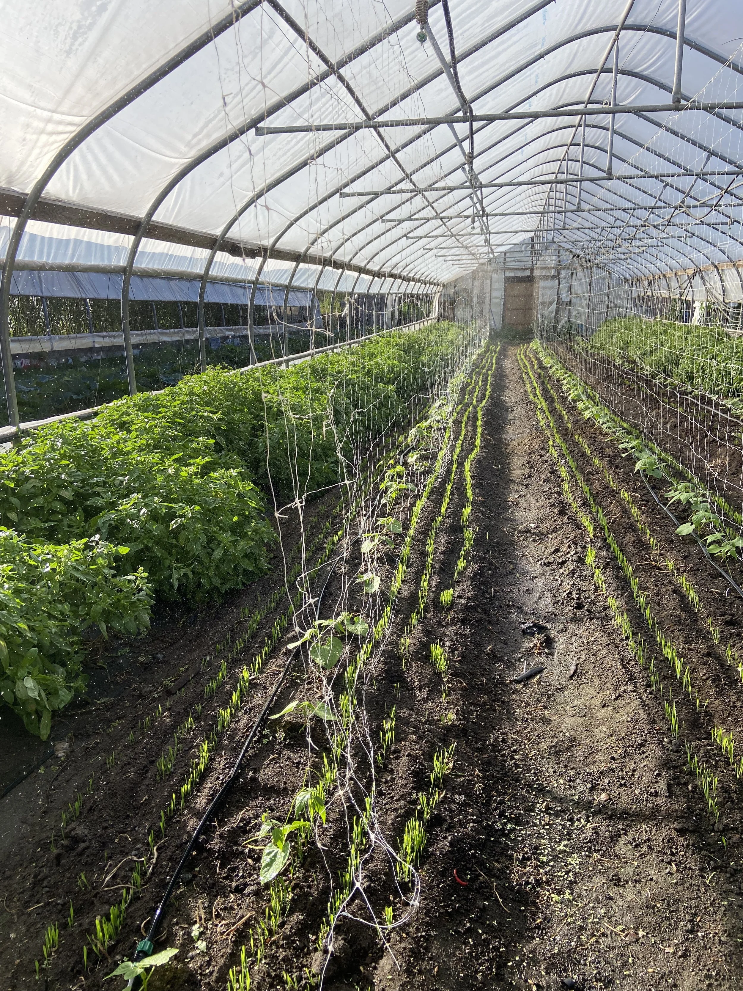 Jav with the help of others spent time on Saturday and Sunday working on removing tomato plants from GH4. After harvesting the cherries, tomato clips are removed, then strings and hooks from the trellising system and finally the tomato plants will be pulled out of the greenhouse. WE fold up fabric and sanitize to use again next year and irrigation is also saved. Once all of that is complete, we will amend the beds and prep for direct seeded lettuce and baby lettuce heads.