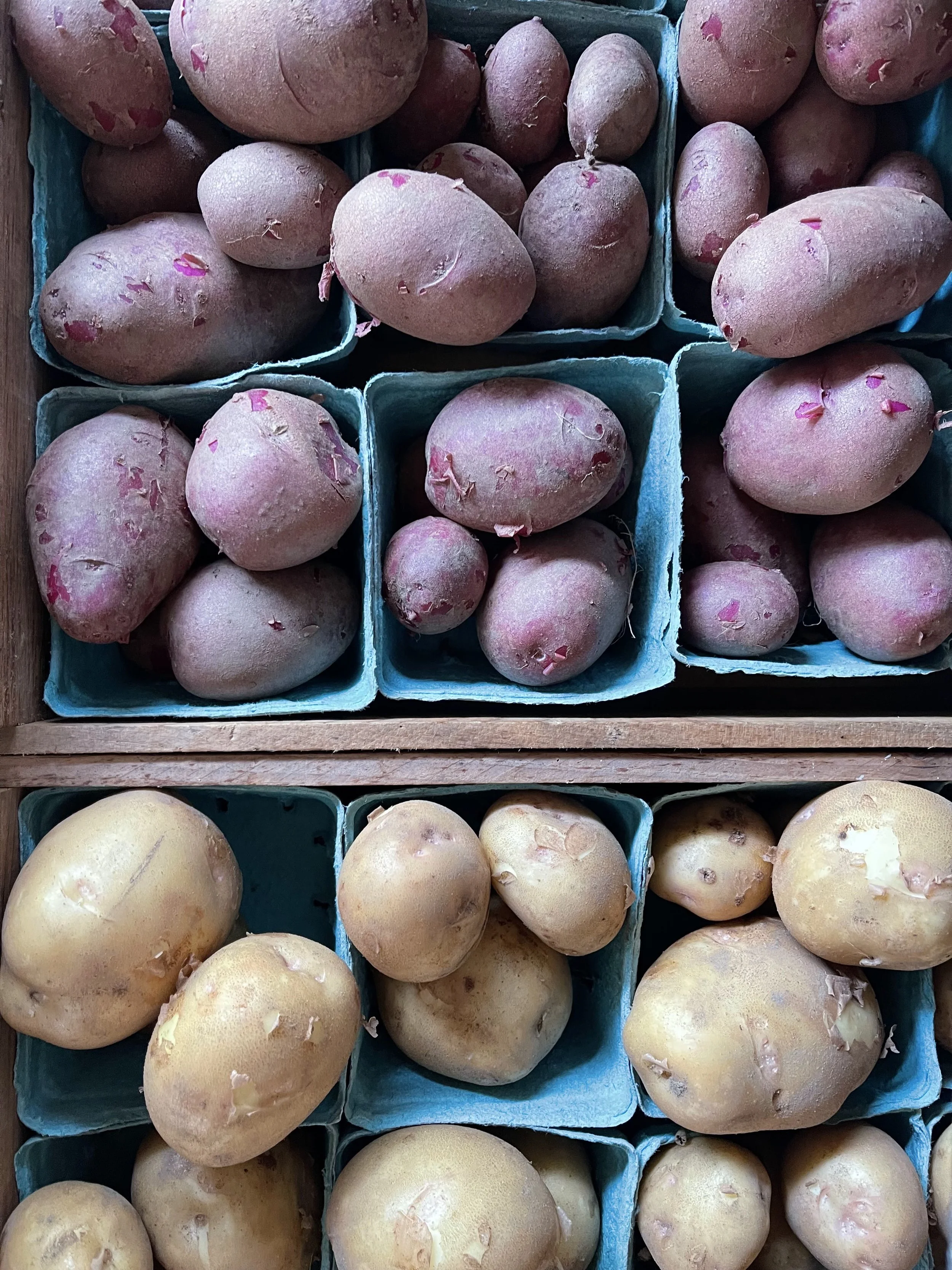 We have run out of MSF Potatoes (we literally grew new potatoes just for you our CSA) and are now bringing in Sparrow Arc farm potatoes. They are local out of VT and are not organic. They limit spraying, and grow as naturally as they can.