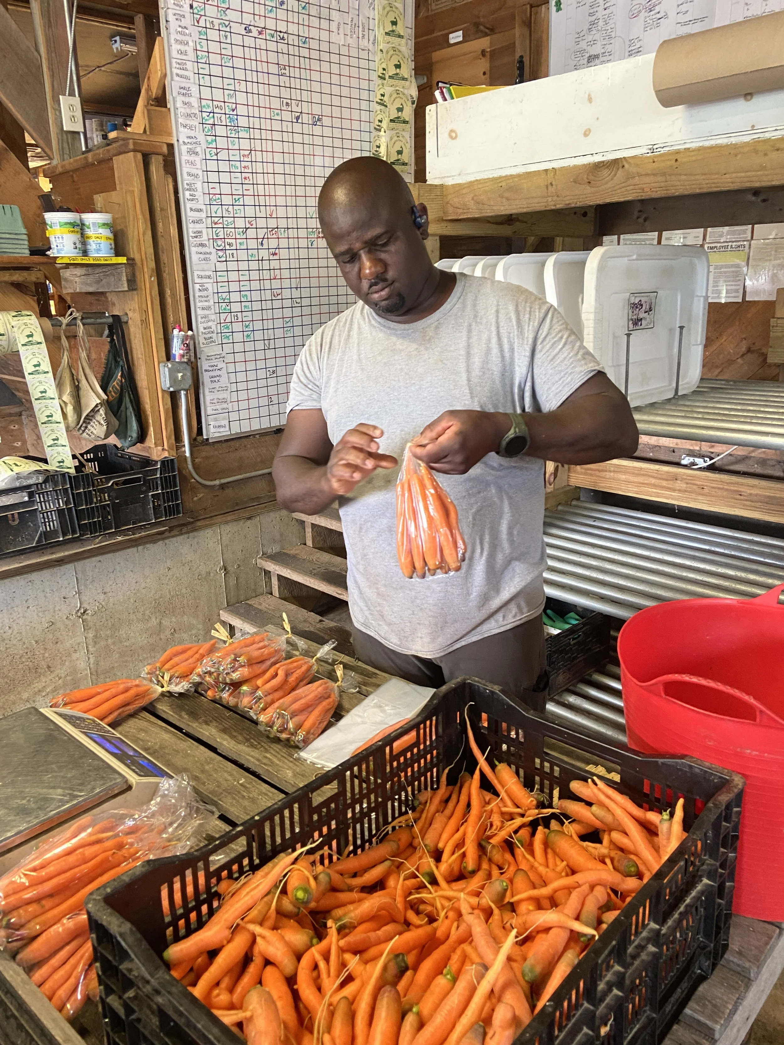 Shawn has been the primary carrot harvester, pulling these beauties out of Garden 1 by the Asparagus patch. We will have carrots back in the CSA hopefully this week.