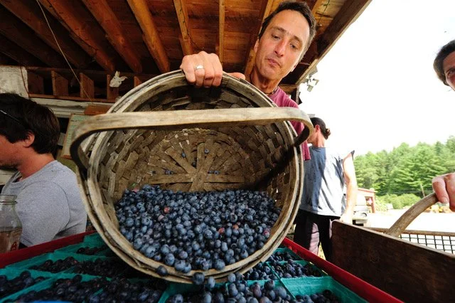 Tim filling pints with the sweet blueberry crop back in 2016.