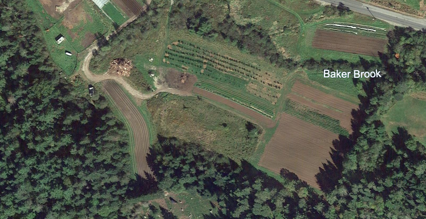 September 2009: Blueberry Patch has been consolidated to make room for Garden 7: on right side of the photo to the left of the woods.