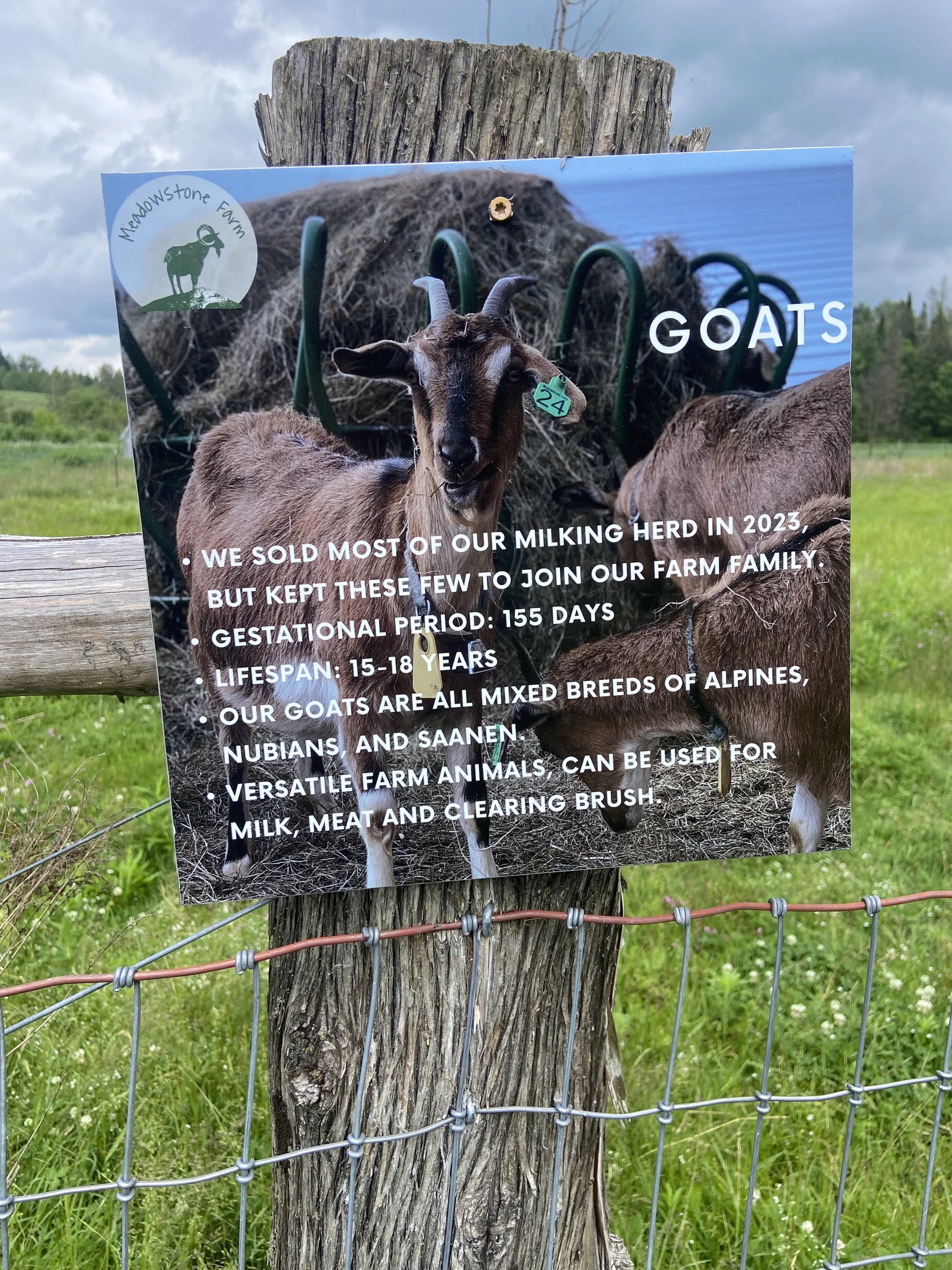 When you walk out to the blueberries, you can visit the goats and donkeys in the back pasture we call Bobby’s World after our original goat buck. These 5 goats are what is left of the herd from a few years ago. Even though we no longer milk goats and make cheese, they are an important part of the farm maintaining pastures, saying hello to visitors and keeping the donkeys company.
